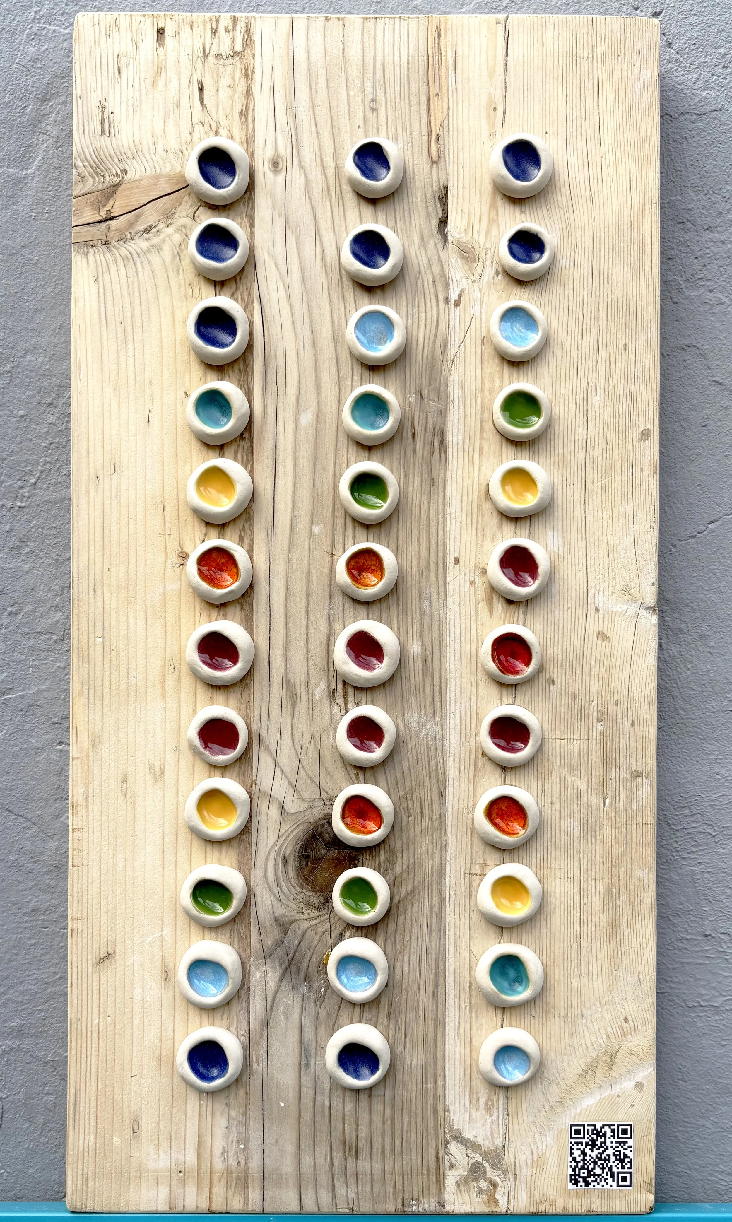 This is a mixed-media piece using ceramics and reclaimed wood from Sussex.